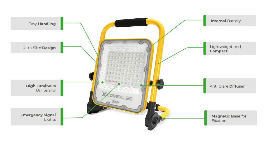 For use in works and equipment, in all areas that require an autonomous luminaire without the need to connect it to the electrical network.