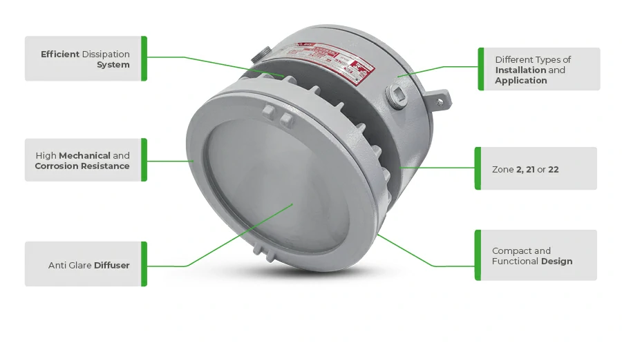 The Explosion-Proof LED Luminaire CLY(D) – Perequê Line is ideal for classified industrial areas, offering high efficiency, resistance, and durability.