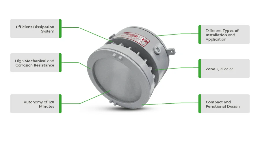 The Explosion-Proof LED Luminaire CLY-E from the Perequê line offers high luminous efficiency, 120 minutes of autonomy in emergency mode, and certification for Zones 2 or 21 and 22, with a lifespan of up to 50,000 hours.
