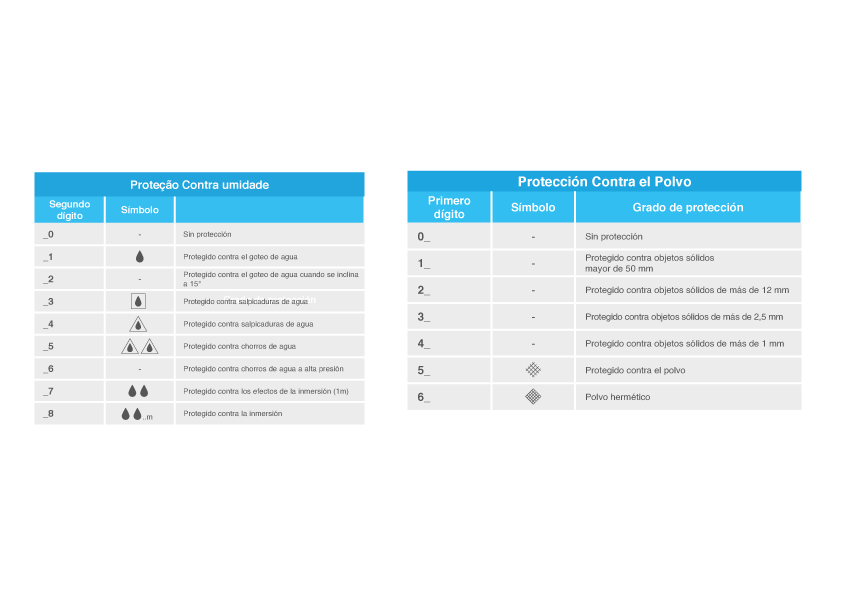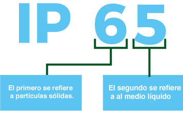 El código que define el grado de protección IP está formado por 2 dígitos, el primero referido a partículas sólidas y el segundo a líquidos.