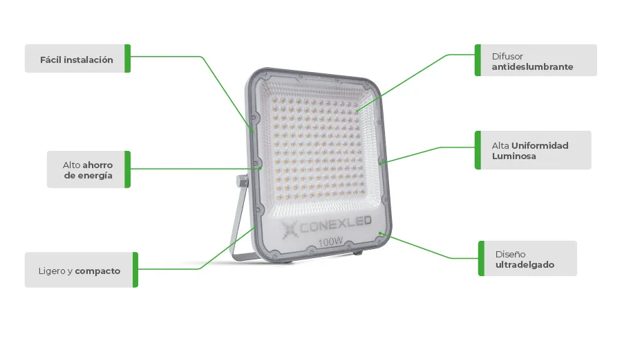 Disponible en potencias de 30W, 50W, 100W, 150W y 200W, el CLH-LF(D) proporciona una iluminación de alta calidad con una eficiencia de hasta 110 lm/W, asegurando un significativo ahorro de energía. El producto tiene una vida útil estimada de 35,000 horas, lo que lo convierte en una elección duradera y fiable para la iluminación de condominios, fachadas, pistas y estadios, estacionamientos y entornos comerciales/industriales.