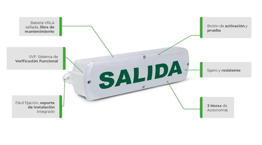 Perfecta opción para sustituir bloques autónomos de luz baja y media, es de fácil instalación, siendo ligero, versátil y moderno.