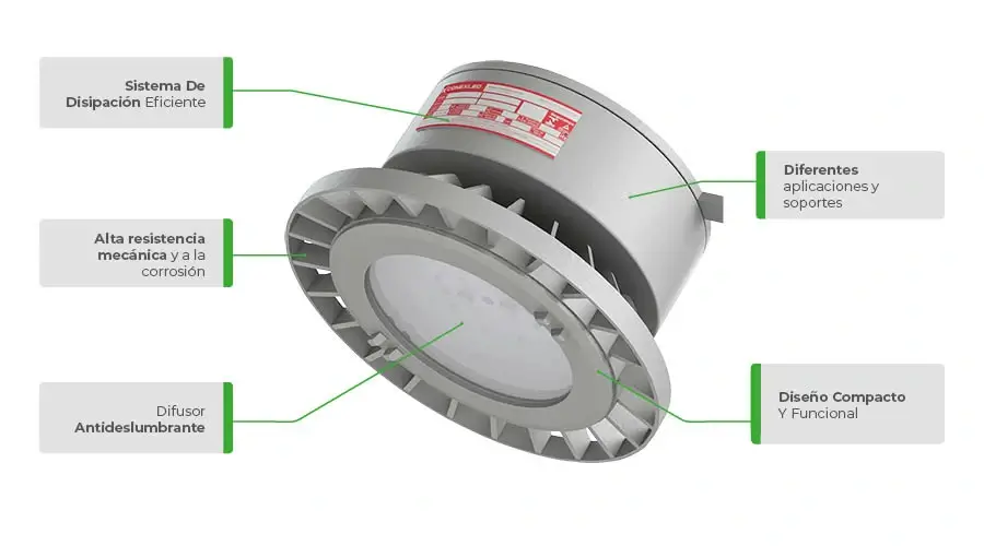 La Luminaria a Prueba de Explosión Alta Potencia (Zona 1 y 2 o 21 y 22) – Línea Sapê CLYX(D) está diseñada para satisfacer las necesidades de iluminación en entornos industriales severos, donde la protección contra atmósferas explosivas (Zona 1 y 2 o 21 y 22) es esencial. Con potencias que varían de 119W a 185W, esta luminaria ofrece alta eficiencia luminosa y resistencia mecánica y a la corrosión.