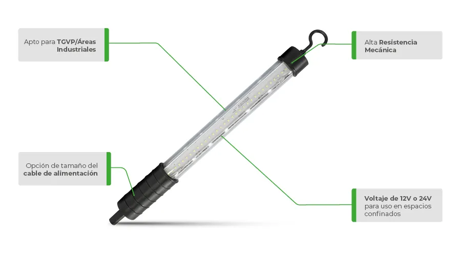 La Luminaria LED Portátil Industrial de la línea Tapirema Conexled reemplaza las luminarias portátiles tradicionales por lámparas fluorescentes, proporcionando ahorro de energía y mayor vida útil, según L70, 30.000 horas. De construcción robusta, agarre y gancho de goma especial, el producto es adecuado para su uso en lugares sujetos a gases, polvo, vapores y polvos. Utiliza tecnología LED ideal para inspección y mantenimiento de áreas industriales. Se pueden suministrar con alimentación bivolt, 12VDC o 24VDC.