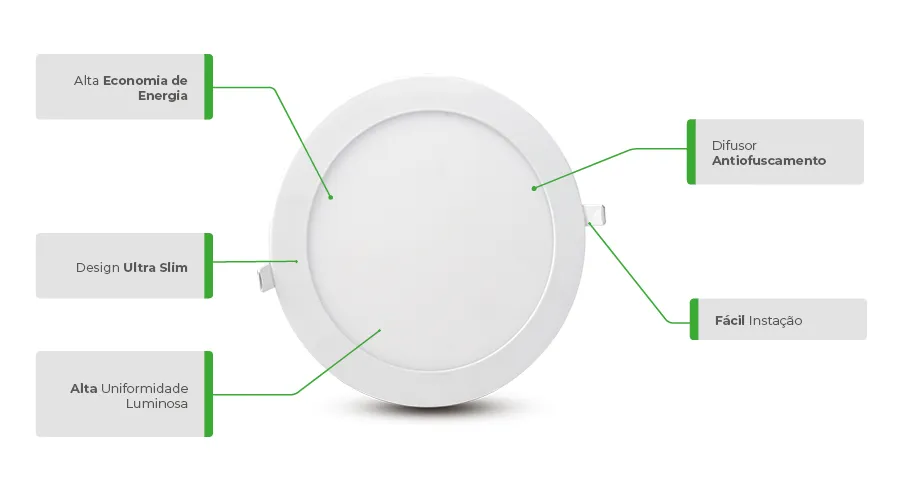 Alta tecnologia eletroeletrônica e moderno design minimalista. São conectadas diretamente na rede elétrica, bivolt, sem necessidade do uso de reatores ou fontes extras.
