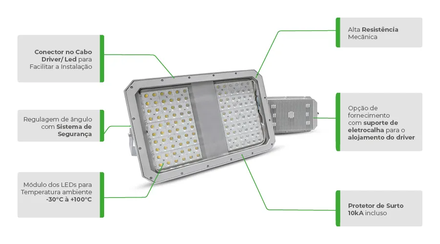 Este Refletor LED para Altas Temperaturas é a escolha ideal para projetos que necessitam de iluminação confiável e durável em condições desafiadoras, garantindo que a qualidade e a eficiência da luz não sejam comprometidas.