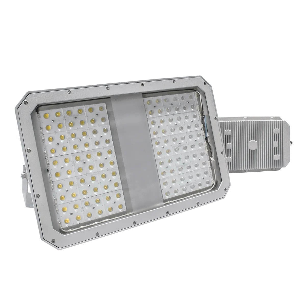 Equipado com opções de potência de 50W, 100W, 150W e 200W, o Refletor LED para Altas Temperaturas garante uma iluminação eficaz e eficiente, alcançando uma eficiência luminosa de até 150 lm/w. Cada unidade vem com um protetor de surto de 10kA, proporcionando proteção essencial contra flutuações de tensão, aumentando a segurança e prolongando a vida útil do equipamento.