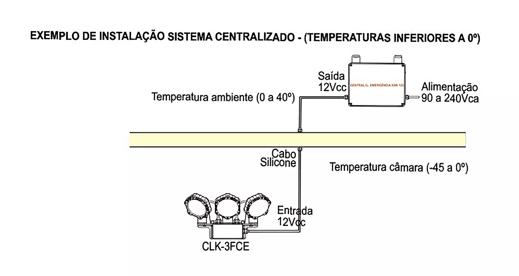 A Linha Juruvaúva CLK (CE) Conexled de luminárias de emergência LED centralizadas para baixas temperaturas fornece segurança, robustez e ótimo desempenho, para aplicações em áreas industriais, e também para áreas com temperatura abaixo de 0°C. Invólucro desenvolvido em ABS com aditivo anti-chama e Lente em policarbonato, o sistema centralizado é composto por central de iluminação com bateria de chumbo-ácido regulada por válvula sela, interligada com cabo de silicone as luminárias de emergência centralizadas, que tem a função de aclaramento ou balizamento. A central de iluminação possui carregador inteligente CC/CV, onde a bateria é carregada inicialmente com corrente constante e após entrar em flutuação, passa a funcionar com tensão constante, proporcionando maior vida útil a bateria.