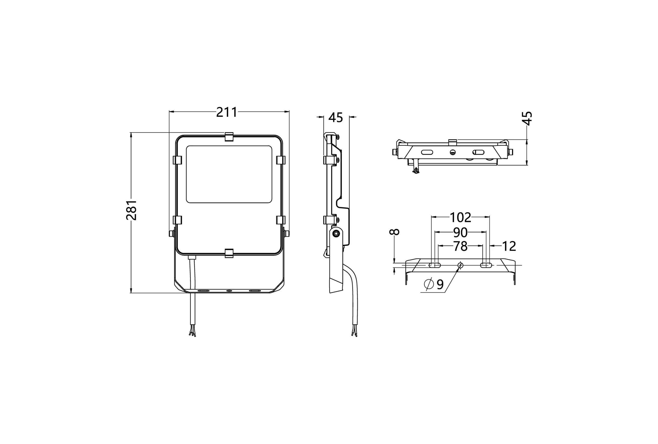 | Ângulos de abertura do facho | 90° |