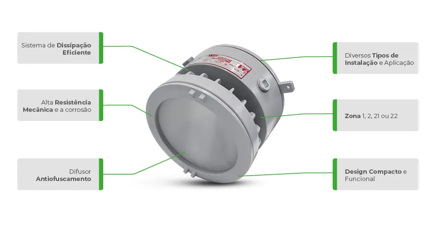 A Luminária à Prova de Explosão LED CLYX – Linha Sapê é ideal para atmosferas explosivas, oferecendo alta resistência e eficiência em ambientes industriais severos.